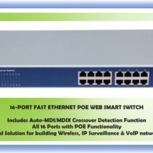 CNET 16-PORT 10/100MBPS POE WEB SMART SWITCH (CSH-1600WP) features 16 Power over Ethernet (PoE) ports that follow IEEE 802.3af, supplying up to 15.4 watts per port. This product can convert standard 90-260V/AC power into low-voltage DC that runs over existing LAN cable to power up IEEE 802.3af compliant network accessories.