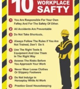 Safety charts are legal posters with a summary of various safety reminder tips to prevent accidents in the workplace. These wall safety charts inform students/employees about health and safety requirements in technical laboratories/workshops and workplaces and, remind them of their basic responsibilities to avoid accidents. This is a health and safety compliance condition that all technical laboratories/workshops and, workplaces must meet.